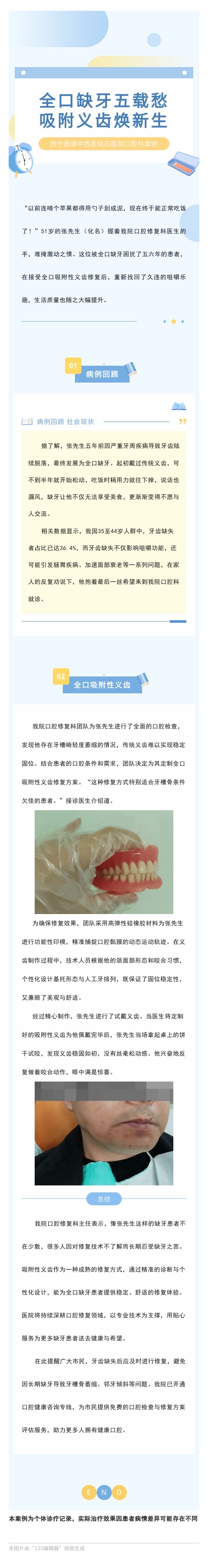 【医疗技术】缺牙五六年,51 岁患者靠全口吸附性义齿重拾咀嚼自由!